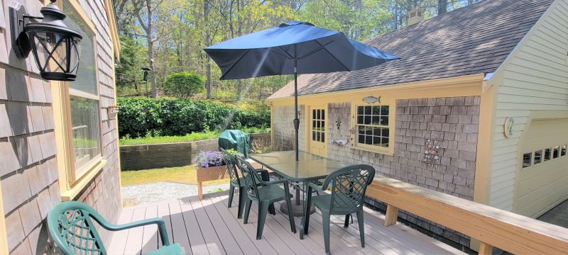 Wonderful, light, airy vacation home! Just 4 doors down is an association beach on Blueberry Pond and there's bike trail access on the street down a little path nearby. About ½ mile to First Light Beach by bike and 1½ miles to Linell or Crosby Landing by car. A great day trip is to head up to the National Seashore, Provincetown, Chatham or Falmouth/Woods Hole. Come back at the end of the day to relax and grill on the deck in this very quiet neighborhood. Yard is really private and includes an outside shower.