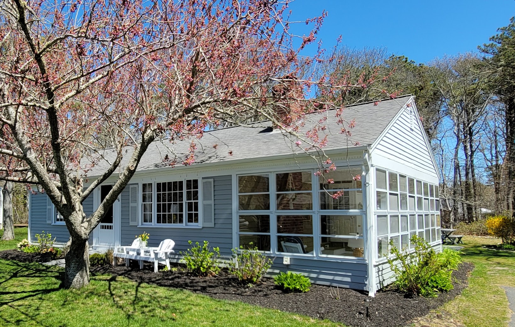 There are 2 bedrooms (one with a queen and the other with a queen/twin trundle so 2 twins - living room, porch, full bath, additional outside shower, huge patio, private yard in a quiet neighborhood all within close proximity to beaches, restaurants, ice cream, mini-golf and shopping - all you need for that quintessential Cape Cod vacation!