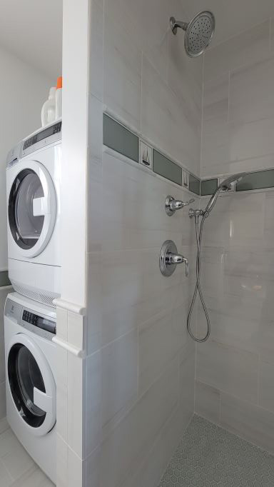 The first-floor bedroom has a full shower bathroom and laundry facilities
